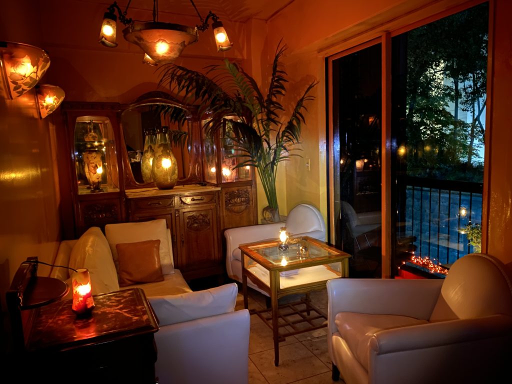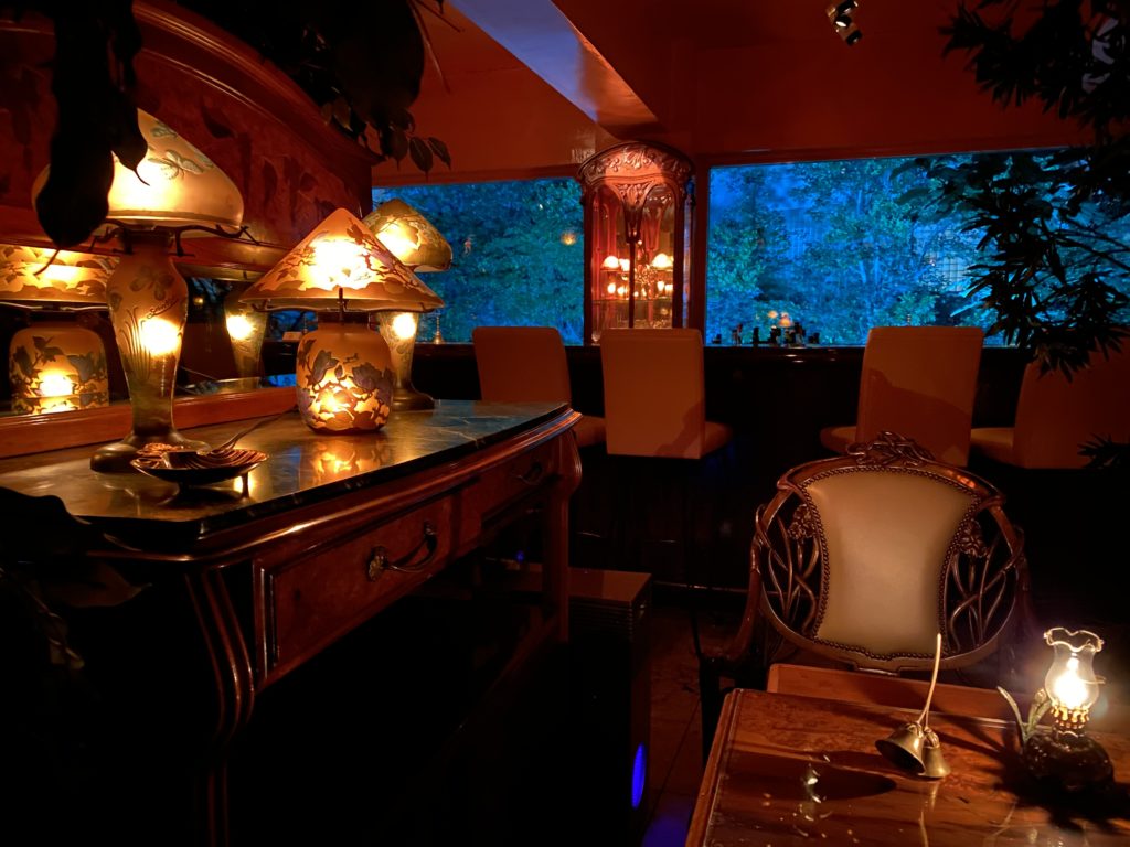 Le BARの店内には、フランスの伝統が誇るArt Nouveau期 (1890年〜1910年代) の直輸入手作り一点物家具やランプが置かれています。